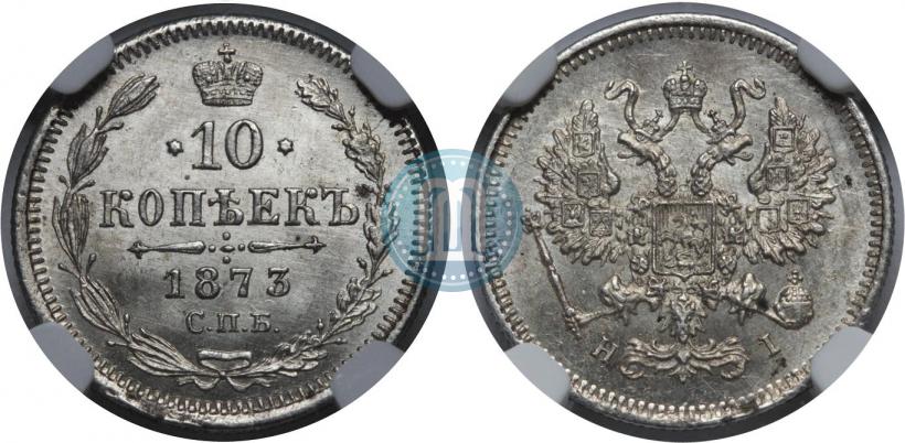 10 kopecks 1873 year СПБ-HI . Silver. Edge ribbed. Conros # 162/46