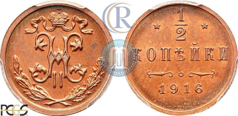 1/2 kopeck 1916 year . Copper. Edge ribbed. Bitkin # 276 (R), Conros # 231/65