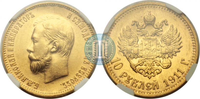 10 roubles 1911 year (ЭБ) . Gold. Edge inscription. Conros # 8/14