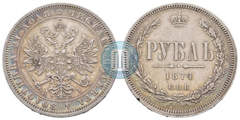 1 rouble 1874 year СПБ-НІ . Silver. Edge inscription. Petrov - 2 rub., Conros # 80/18