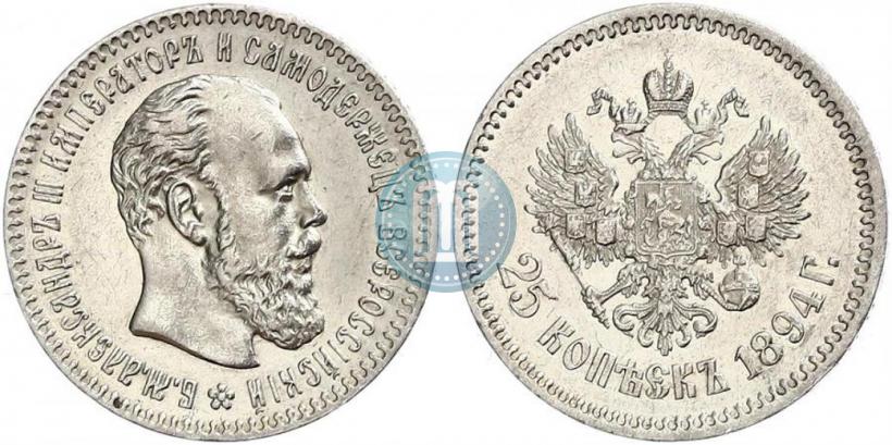 25 kopecks 1894 year (АГ) . Silver. Edge inscription. Conros # 139/9
