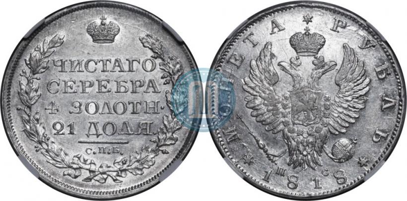 1 rouble 1818 year СПБ-ПС . Eagle of 1814. Silver. Edge inscription. Petrov - нет rub., Ilyin - 5 rub., Conros # 77/19