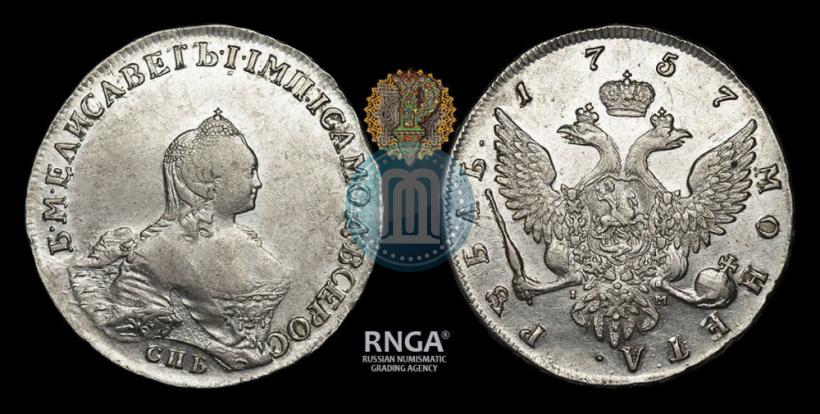 1 rouble 1757 year СПБ-IМ "Portrait by B. Scott". Silver. Edge inscription. Petrov - 3,5 rub., Conros # 66/7