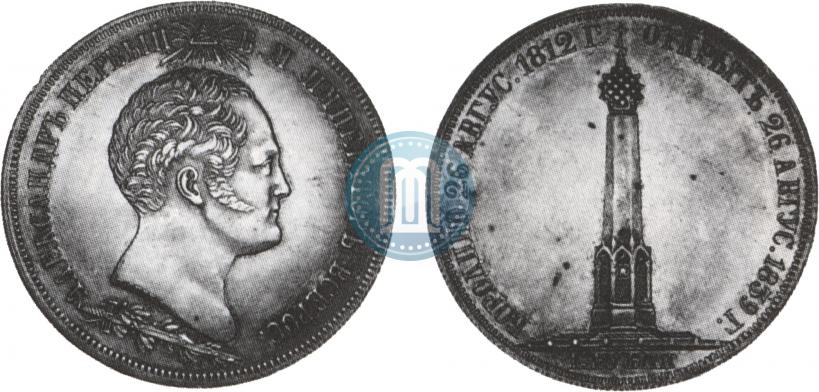 1,5 roubles 1839 year Н. CUBE F. "In memory of unveiling of memorial chapel at Borodino field". Short rays above head. Silver. Edge ribbed. Bitkin # 893 (R1), Petrov - нет rub., Ilyin - 8 rub., Conros # 309/2