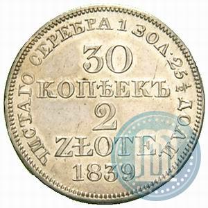 30 kopecks - 2 złotych 1839 year MW . Хвост орла прямой. Silver. Edge dotted. Conros # 473/6