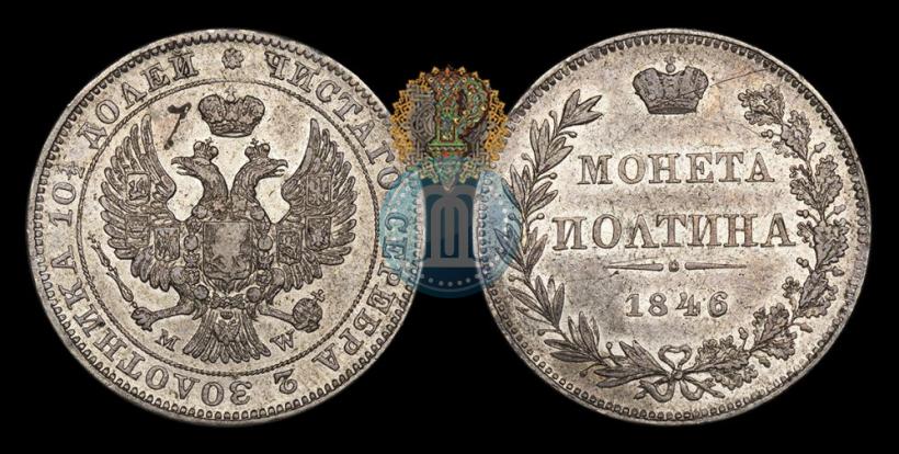 Poltina 1846 year MW . Silver. Edge inscription. Petrov - 1-7 rub., Ilyin - 3 rub., Conros # 118/77 118/78 118/79 118/80 118/81 118/82 118/83 118/84 118/85