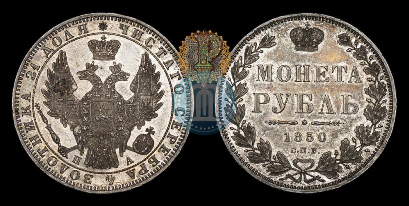 1 rouble 1850 year СПБ-ПА . St. George without cloak. Large crown on the reverse. Silver. Edge inscription. Petrov - 1,5 rub., Conros # 79/111