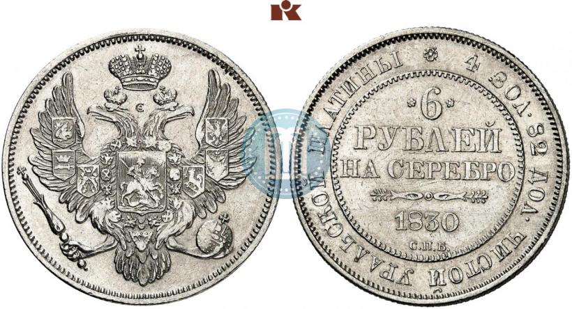 6 roubles 1830 year СПБ . Platinum. Edge ribbed. Bitkin # 56 (R2), Conros # 36/2