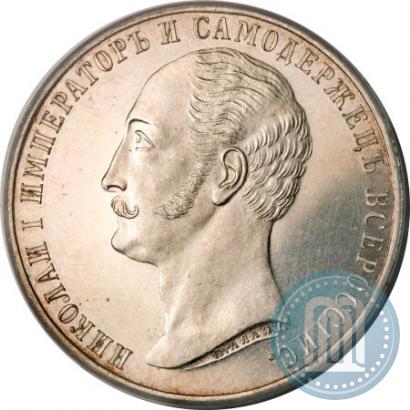 1 rouble 1859 year "In memory of unveiling of monument to Emperor Nicholas I in St. Petersburg". Flat strike. Silver. Edge plain. Petrov - 1,5 rub., Conros # 312/1