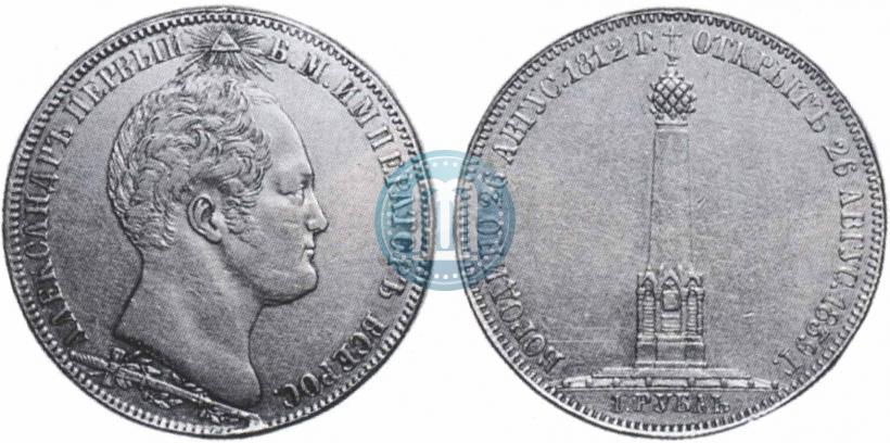 1 rouble 1839 year Н. CUBE F. "In memory of unveiling of memorial chapel at Borodino field". Silver. Edge ribbed. Bitkin # 895 (R), Petrov - 2,25 rub., Conros # 310/1
