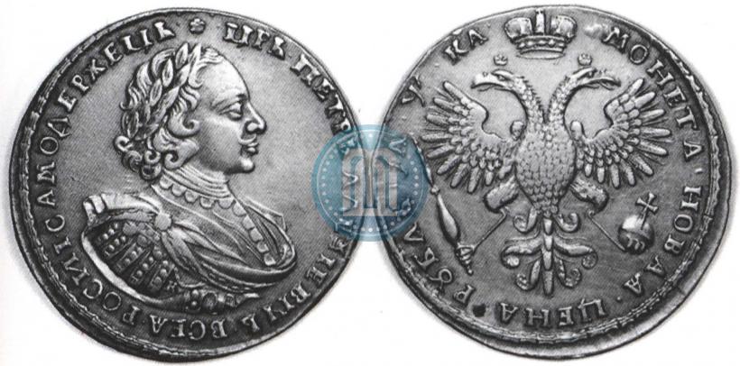 1 rouble 1721 year K "Portrait with shoulder straps". Branch on the chest. Silver. Edge inscription. Bitkin # 452 (..., R)