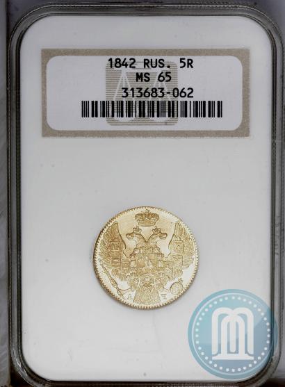 5 roubles 1842 year СПБ-АЧ . Gold. Edge dotted. Conros # 17/13