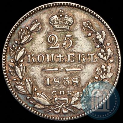 25 kopecks 1838 year СПБ-НГ . Eagle of 1832-1837. Silver. Edge dotted. Conros # 137/7
