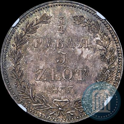 3/4 roubles - 5 złotych 1833 year НГ . Silver. Edge inscription. Petrov - 1 rub., Conros # 472/1