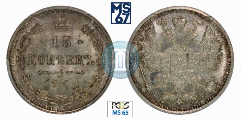 15 kopecks 1915 year ВС . Silver. Edge ribbed. Conros # 149/81