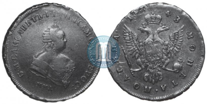 Poltina 1743 year ММД . Silver. Edge inscription. Bitkin # 142 (R), Petrov - 4 rub., Conros # 105/2