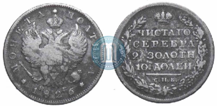 Poltina 1826 year СПБ-НГ "Eagle with wings upwards". Silver. Edge inscription. Bitkin # 97 (R), Petrov - 1 rub., Conros # 116/39