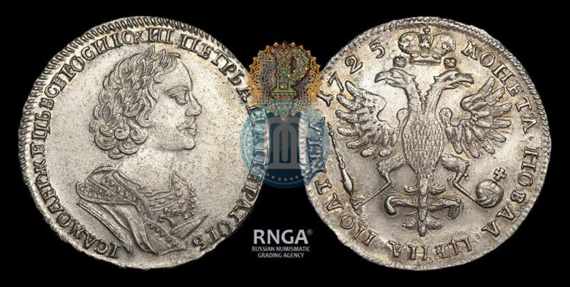 Poltina 1725 year "Portrait in ancient armour". "ВСЕРОСИICКИI". Silver. Edge inscription. Bitkin # 1075 (R, R1)