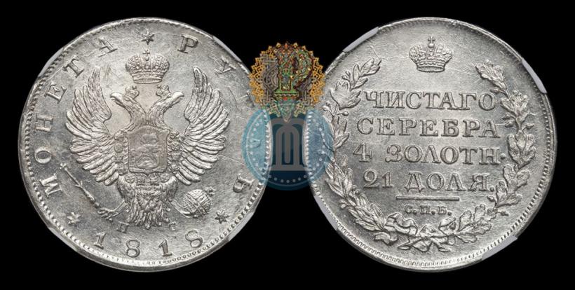 1 rouble 1818 year СПБ-ПС . Eagle of 1814. Silver. Edge inscription. Petrov - нет rub., Ilyin - 5 rub., Conros # 77/19