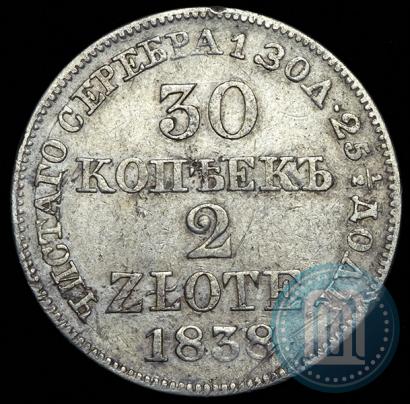 30 kopecks - 2 złotych 1838 year MW . Хвост орла прямой. Silver. Edge dotted. Conros # 473/5