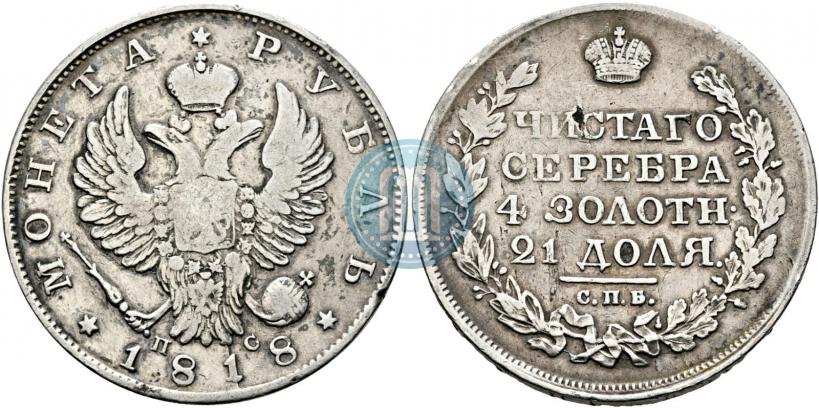 1 rouble 1818 year СПБ-ПС . Eagle of 1819. Silver. Edge inscription. Petrov - нет rub., Conros # 77/32