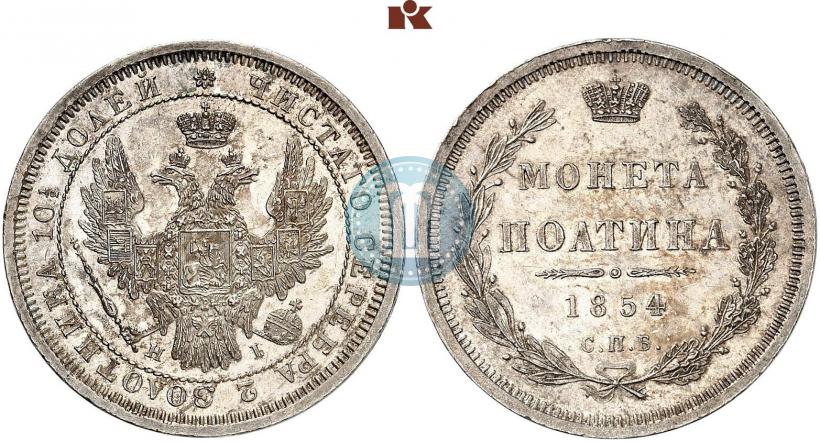 Poltina 1854 year СПБ-HI . Silver. Edge inscription. Petrov - 0,75 rub., Conros # 118/52