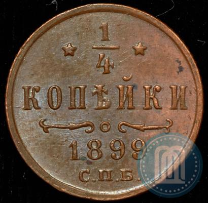 1/4 kopeck 1899 year СПБ . Copper. Edge ribbed. Conros # 243/55