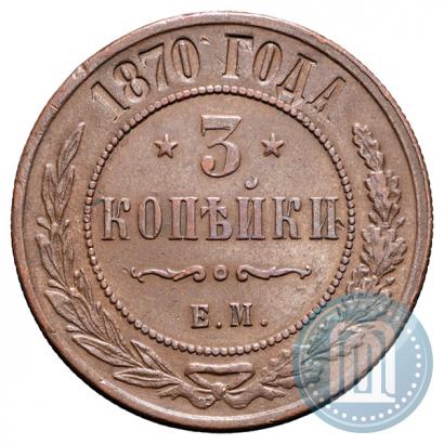 3 kopecks 1870 year ЕМ . Copper. Edge ribbed. Petrov - 0,75 rub., Conros # 190/8