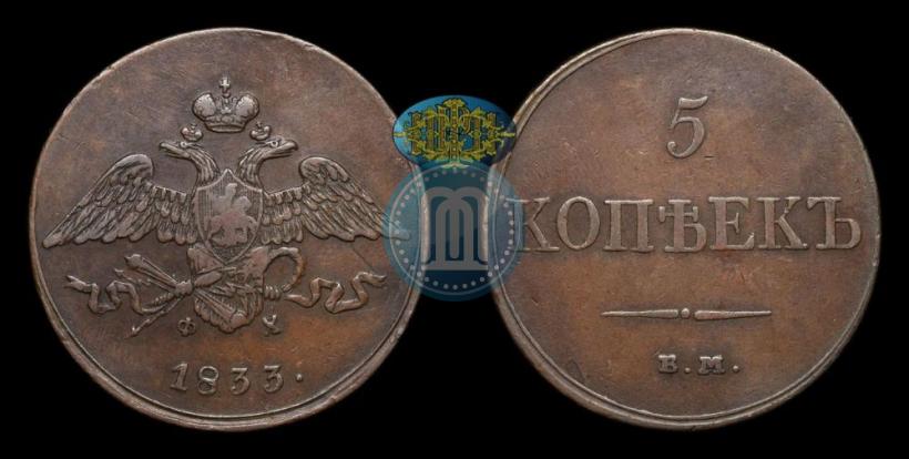Price 5 kopecks 1833 year ЕМ-ФХ