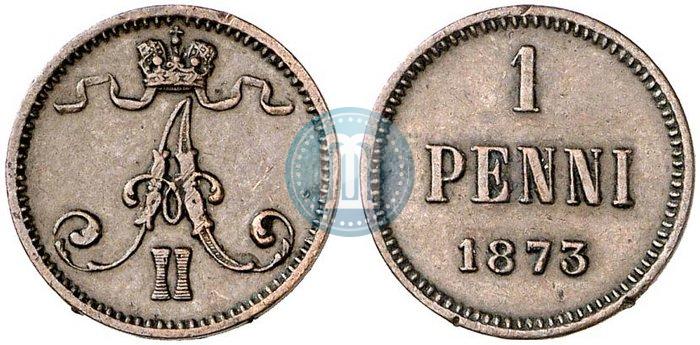 1 penni 1873 year . Copper. Edge plain. Conros # 489/9