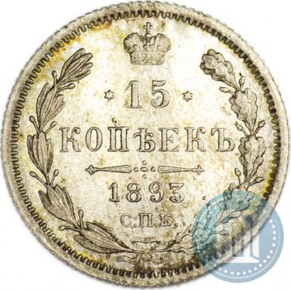 15 kopecks 1893 year СПБ-АГ . Silver. Edge ribbed. Conros # 149/58