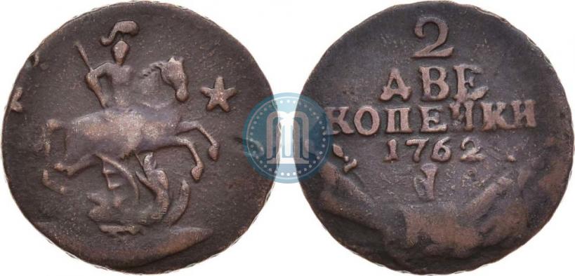 2 kopecks 1762 year . "КОПЕИКИ". Copper. Edge netlike. Bitkin # 31 (R), Petrov - 0,75-1 rub., Conros # 192/1 192/2 192/3