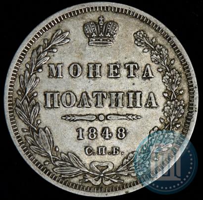 Poltina 1848 year СПБ-HI . Silver. Edge inscription. Petrov - 0,75 rub., Conros # 118/42