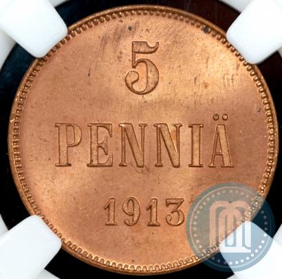 5 pennia 1913 year . Copper. Edge plain. Conros # 488/23