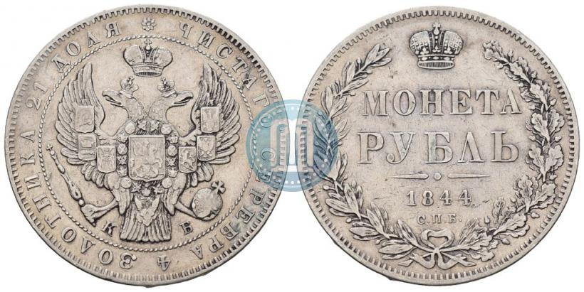 1 rouble 1844 year СПБ-КБ . Large crown. Silver. Edge inscription. Petrov - 1,5 rub.
