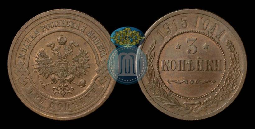 3 kopecks 1915 year . Copper. Edge ribbed. Conros # 190/49