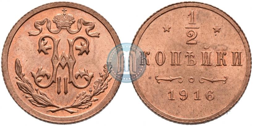 1/2 kopeck 1916 year . Copper. Edge ribbed. Bitkin # 276 (R), Conros # 231/65