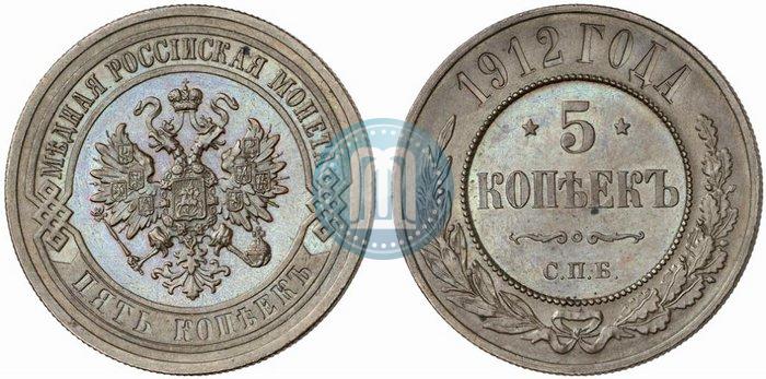 5 kopecks 1912 year СПБ . Copper. Edge ribbed. Conros # 185/23
