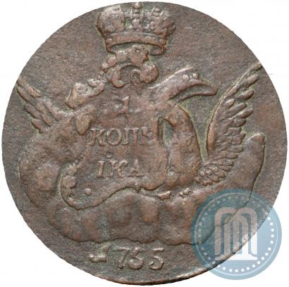 1 kopeck 1755 year СПБ . Copper. Edge netlike. Bitkin # 532 (R), Petrov - 1 rub., Conros # 206/3