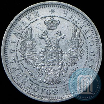 25 kopecks 1858 year СПБ-ФБ . Silver. Edge dotted. Conros # 137/54