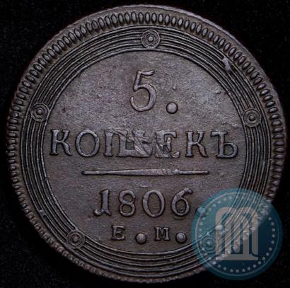 5 kopecks 1806 year ЕМ . Copper. Edge cordlike leftwards. Petrov - 0,5 rub., Conros # 182/11