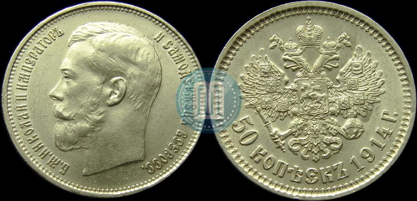 50 kopecks 1914 year (ВС) . Silver. Edge inscription. Bitkin # 94 (R), Conros # 121/30 121/40