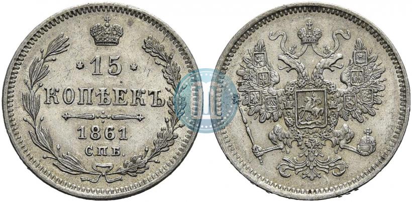 15 kopecks 1861 year СПБ . Silver. Edge dotted. Conros # 149/13