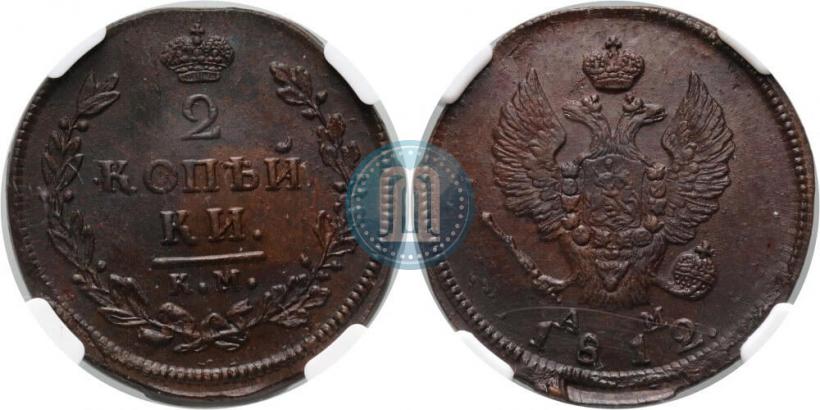 2 kopecks 1812 year КМ-АМ . Copper. Edge plain. Petrov - 0,5 rub., Conros # 198/45