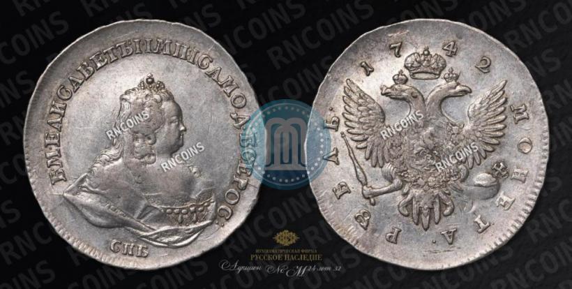 1 rouble 1742 year СПБ . Petersburg edge. Silver. Edge inscription. Petrov - 2,25 rub., Conros # 64/3