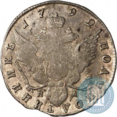 Polupoltinnik 1792 year СПБ-ЯА . Silver. Edge cordlike leftwards. Petrov - 1,25 rub., Conros # 131/19