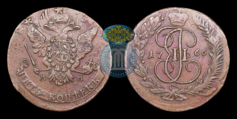 5 kopecks 1766 year ММ . Copper. Edge netlike. Petrov - 2 rub., Conros # 180/93