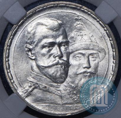 1 rouble 1913 year (ВС) "In commemoration of tercentenary of Romanov's dynasty". Flat strike. Silver. Edge inscription. Conros # 318/1