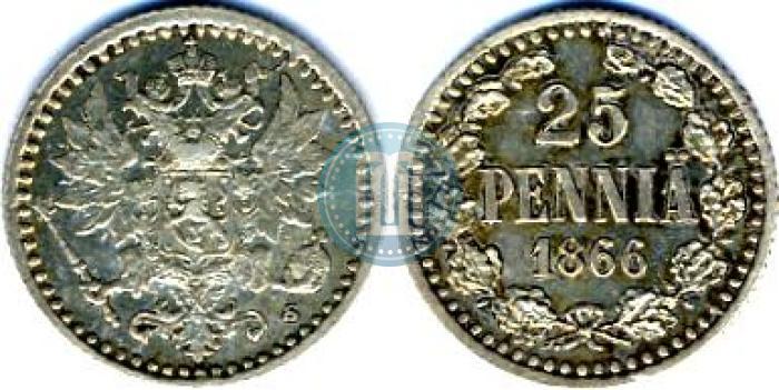 25 pennia 1866 year S . Silver. Edge ribbed. Conros # 486/2