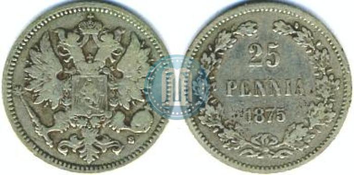 25 pennia 1875 year S . Silver. Edge ribbed. Conros # 486/9